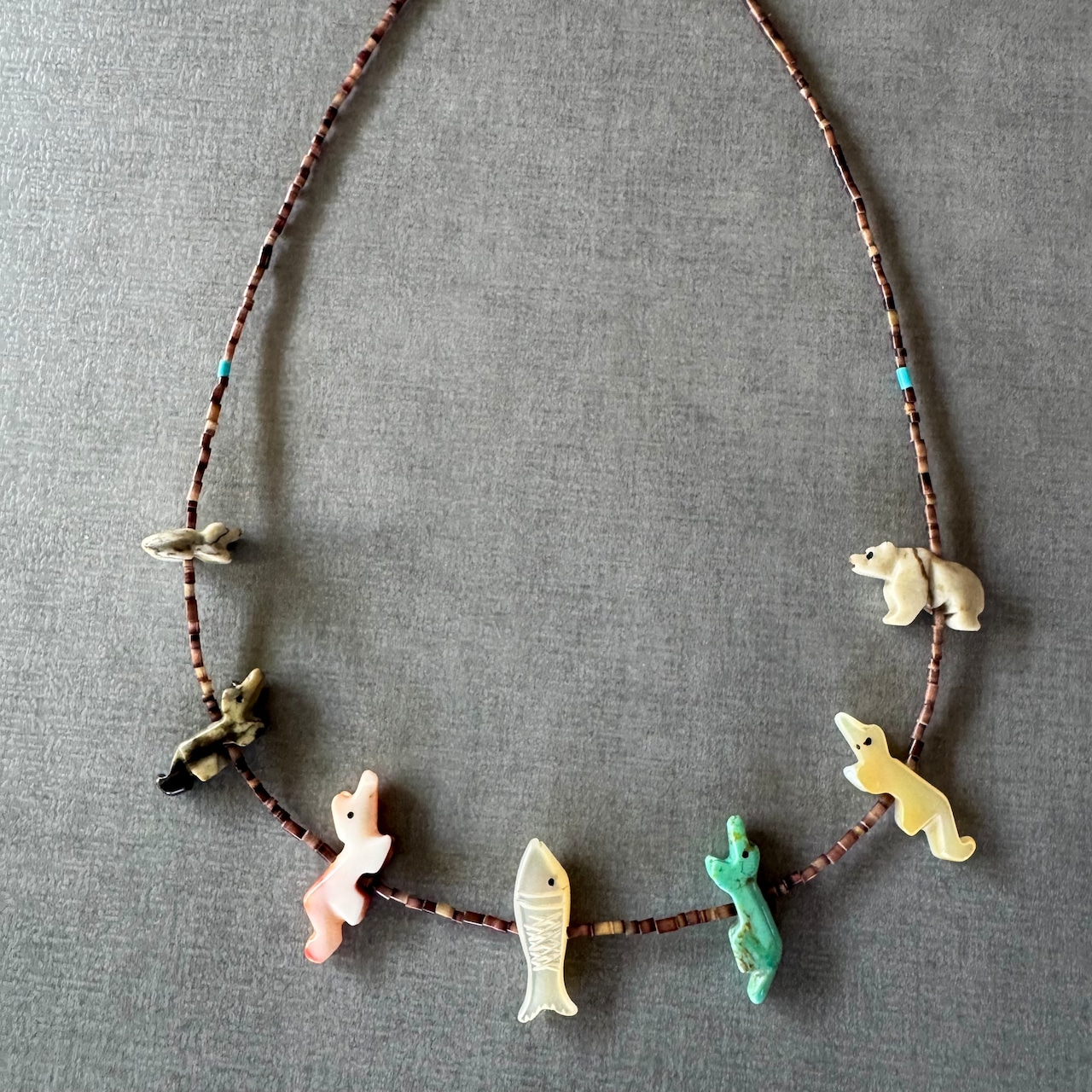 壊れて届いたビンテージのネックレスを店主が長さを変えたり、動物の配置を変えてアレンジしたネックレス。