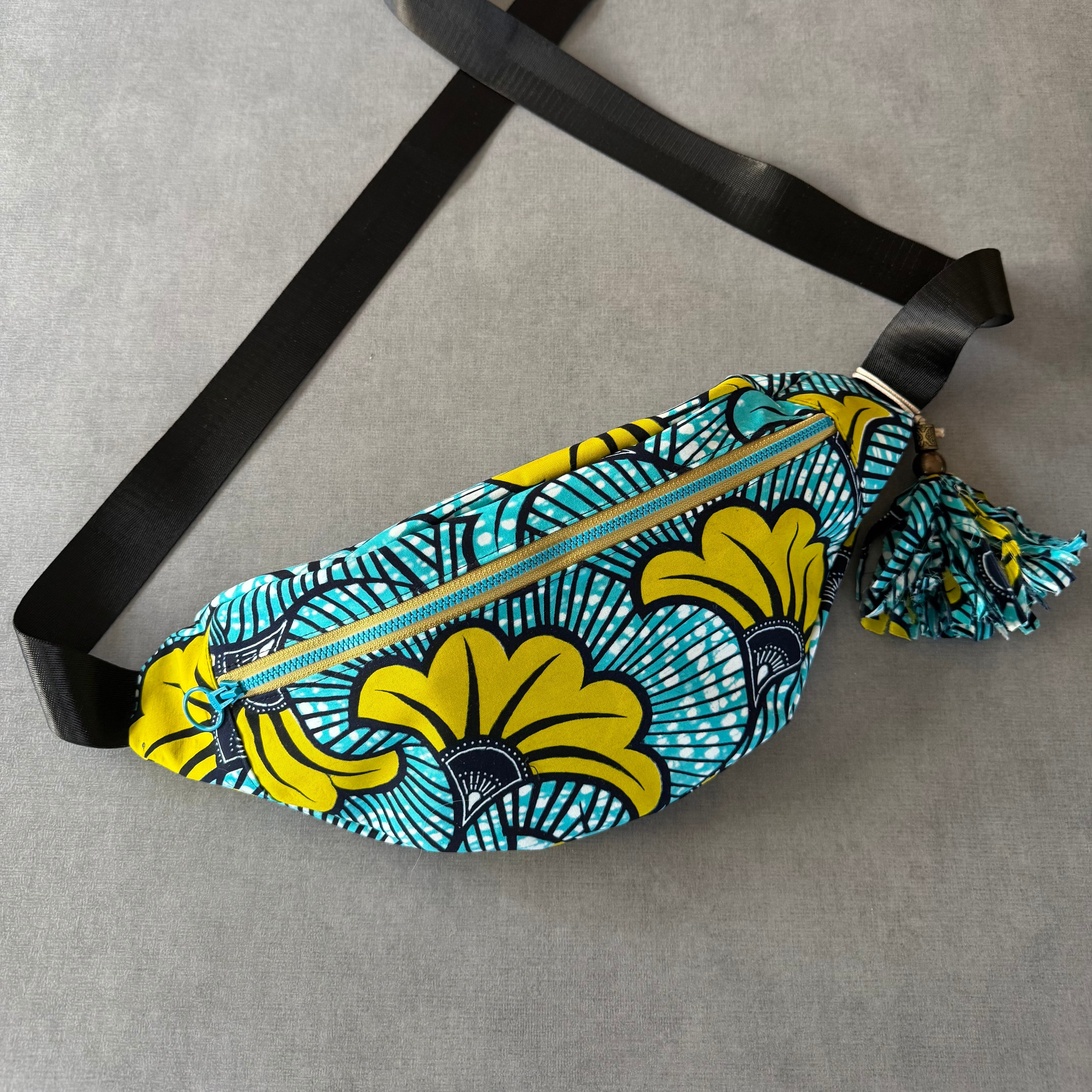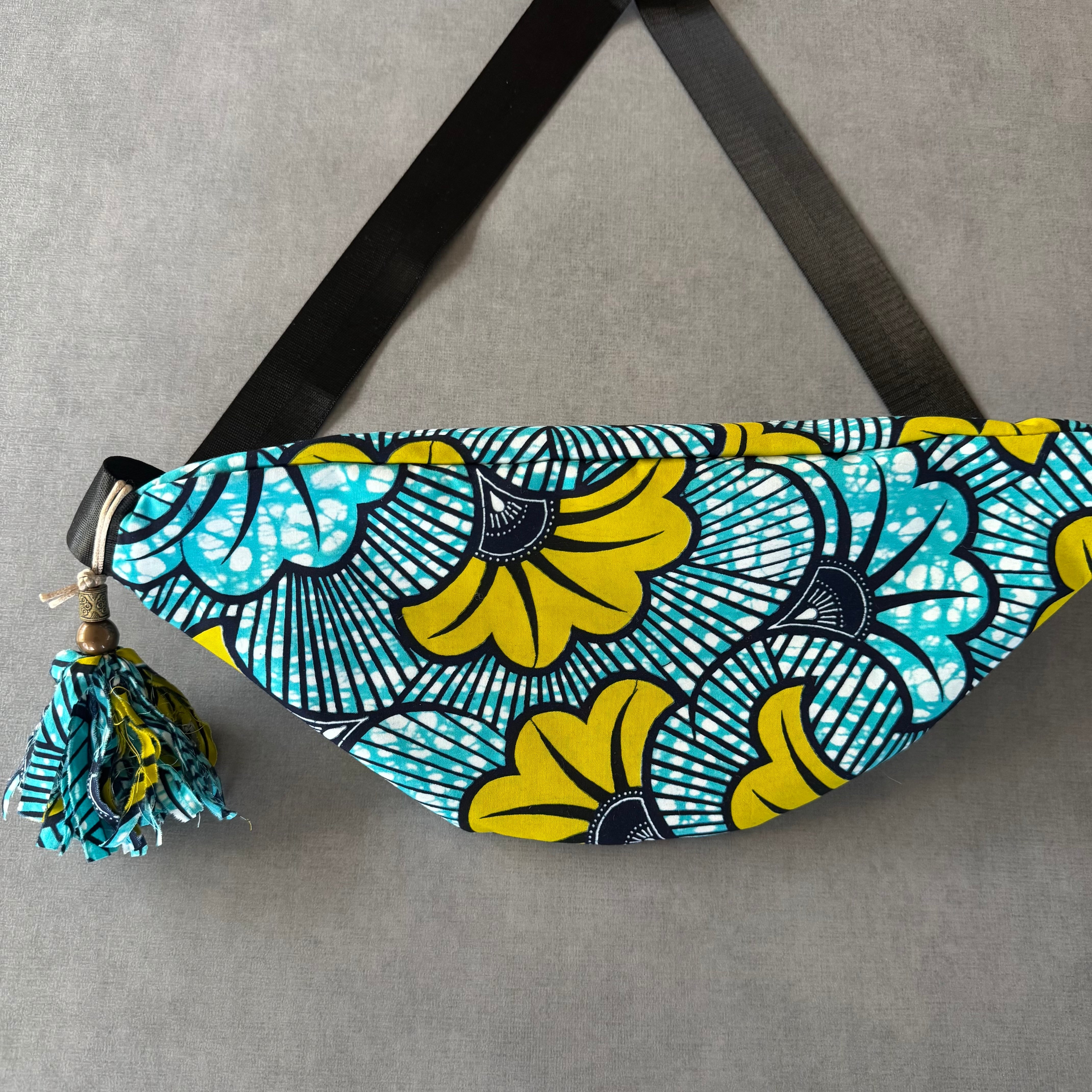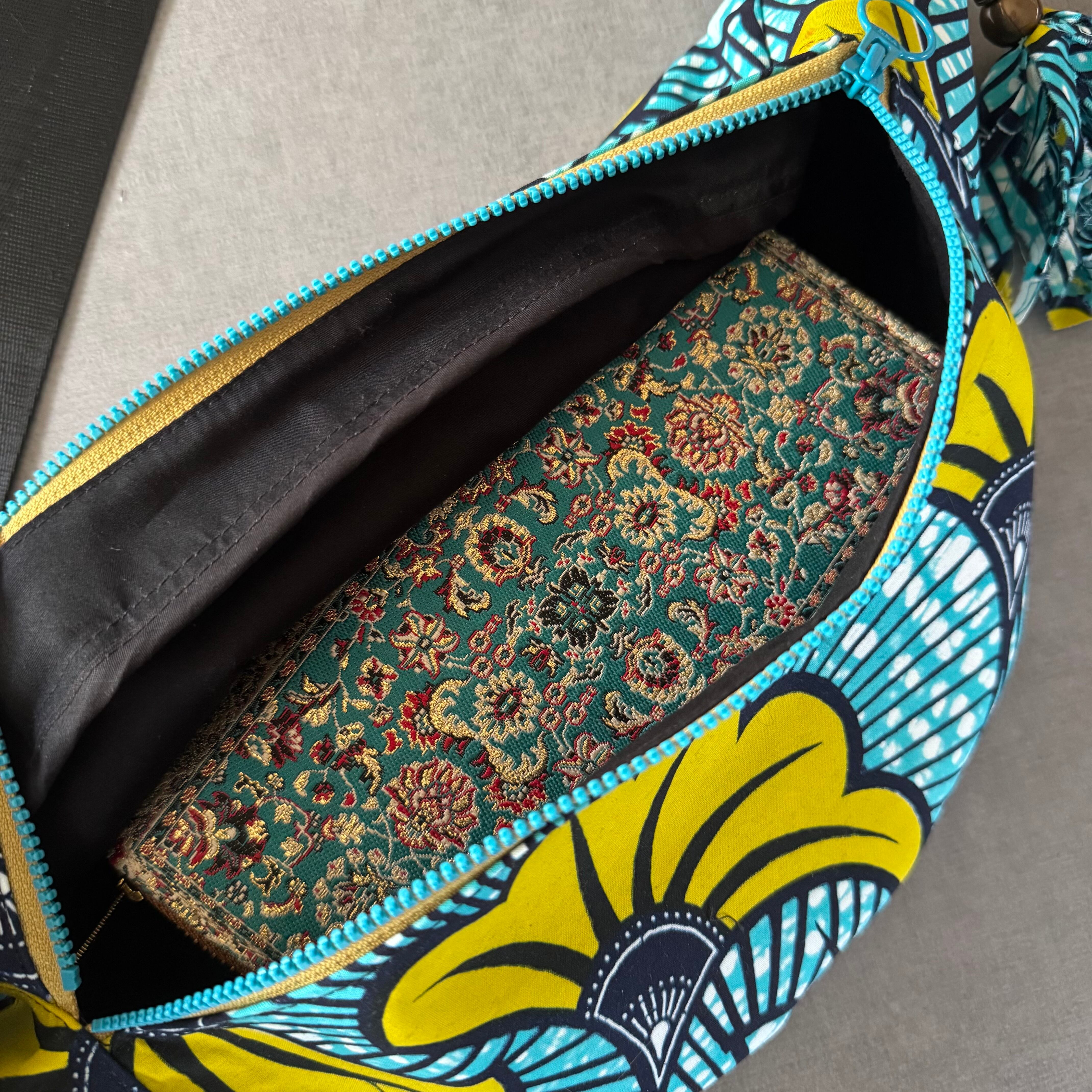 アフリカンバティック ボディバッグ 水色と黄色