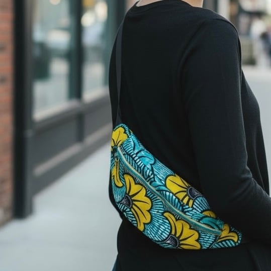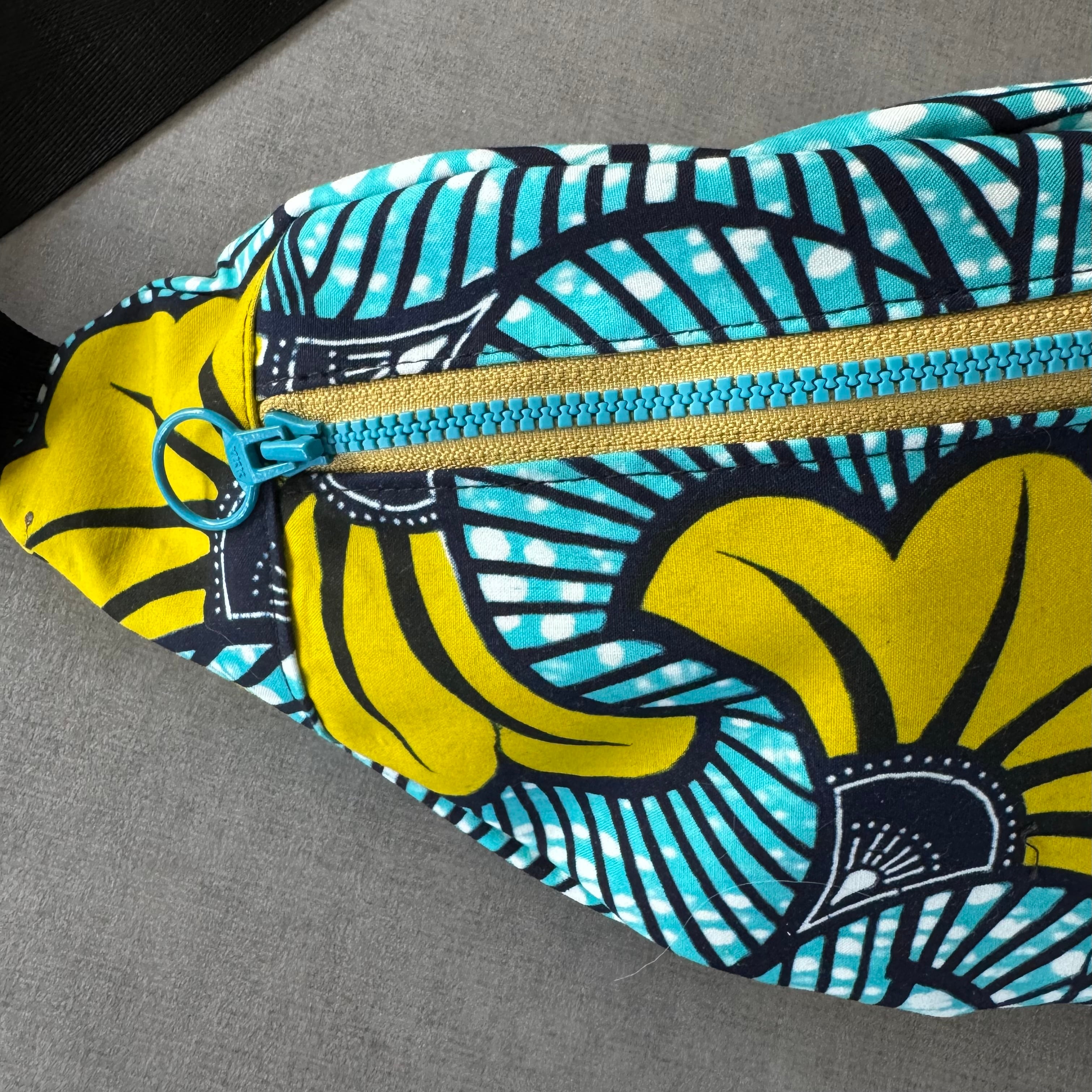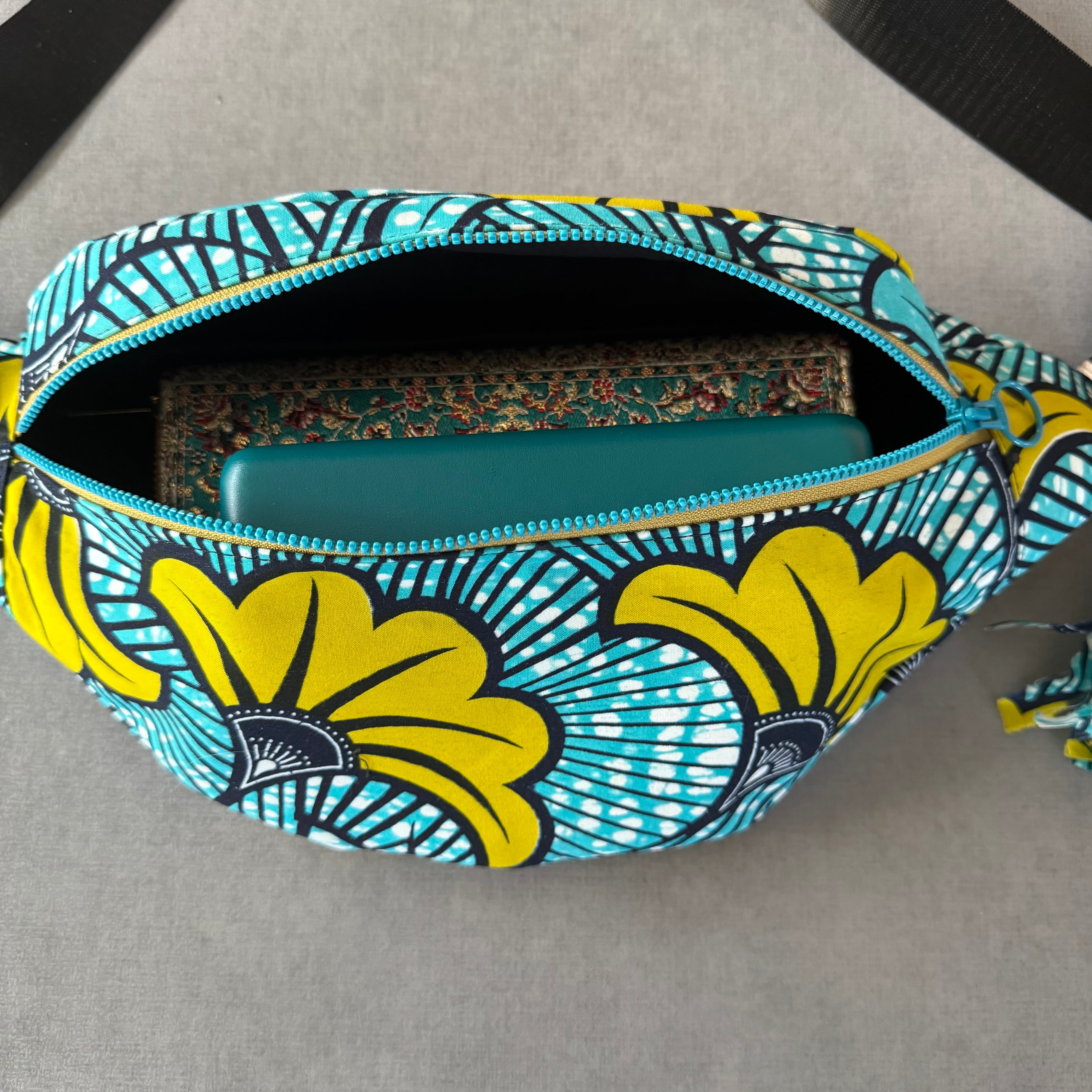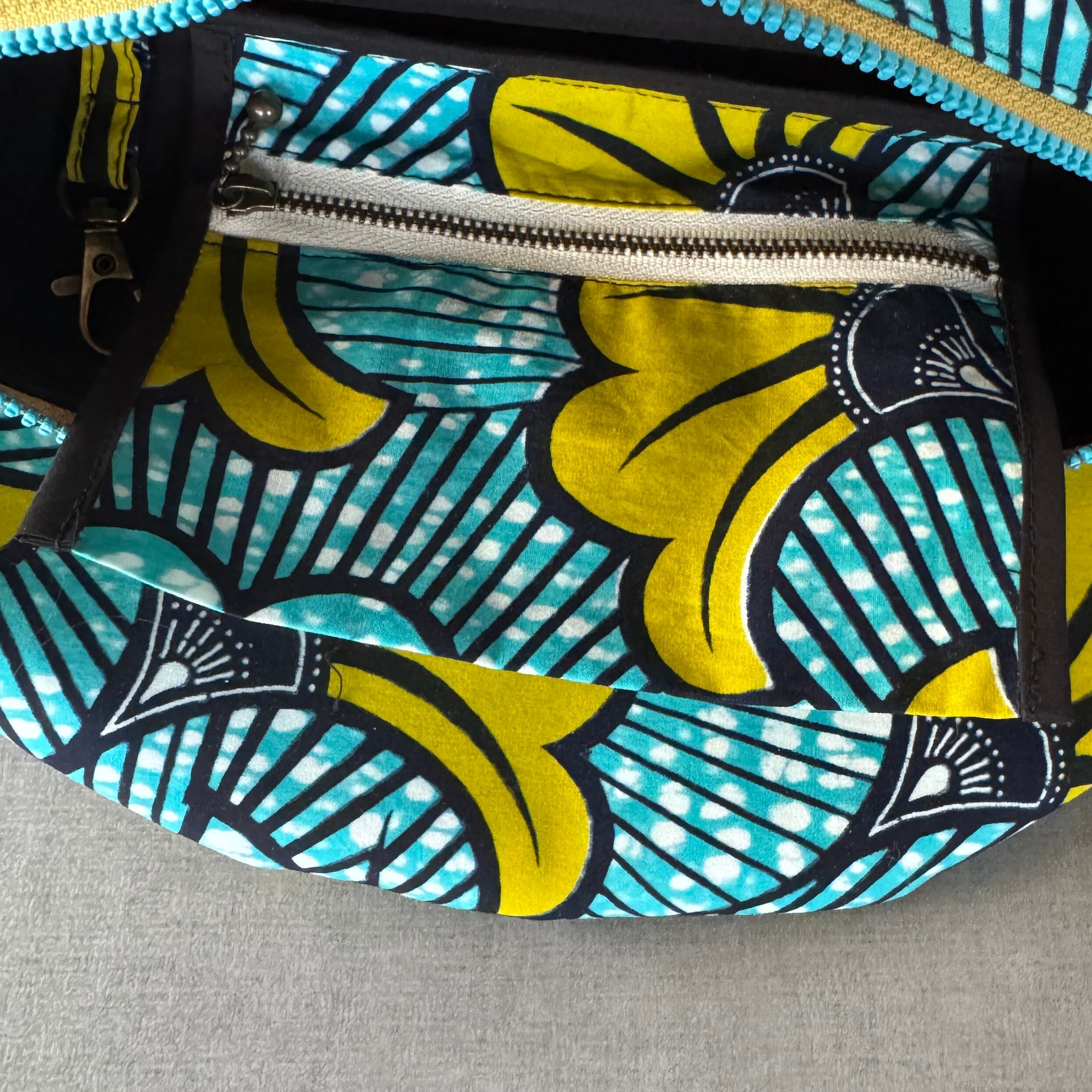 アフリカンバティック ボディバッグ 水色と黄色
