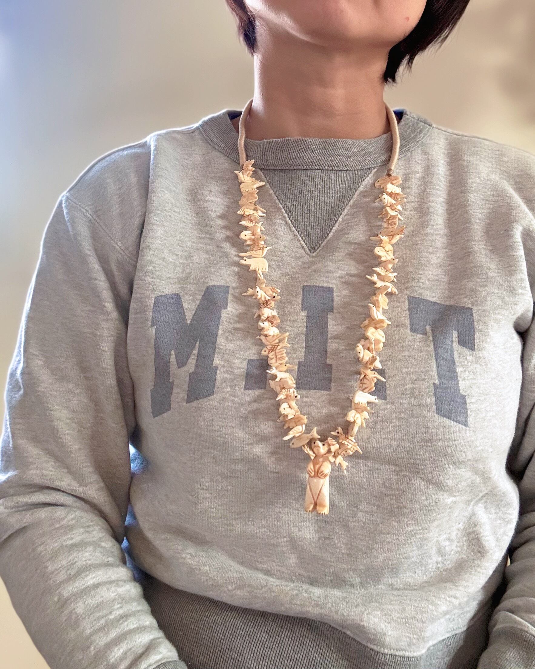 優しいアイボリーカラーのベアネックレスです。